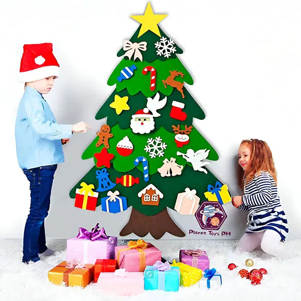 Jelka visine 1,2 metra jednostavno se pričvršćuje na zid i dolazi sa čak 26 ukrasa izrađenih od visokokvalitetnih materijala. Uz motivaciju kao što su pahuljice, Deda Mraz, božićne čarape, šeširi, sneško belić i bombone, mališani će se radovati svakom trenutku provedenom u kreiranju svojih dekoracija.